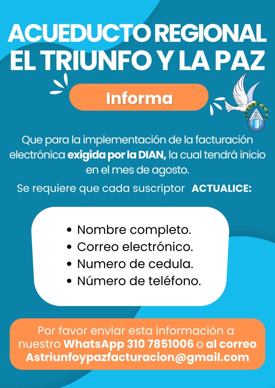 Invitamos a todos los suscriptores de nuestro acueducto As Triunfo Paz a la Asamblea General que tendrá lugar en el Polideportivo de El Triunfo, el día 12 de abril del 2025, desde las 8:00 am.